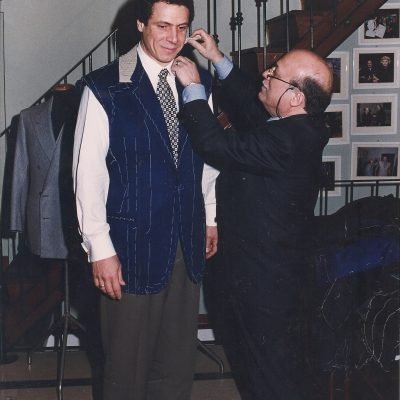 Luigi Gallo has a sixty-year long history, very old-fashioned. He comes from an invisible village in Basilicata, Roccanova di Potenza. Luigi Gallo arrives in Rome in 1957, with scissors in his suitcase and mended trousers. In those early years, he breathes Rome and the cinematic elegance that occasionally passes on the sidewalks of the center. He dreams of Cary Grant's trousers and Gary Cooper's two-button jackets. Over the years he gains experience in the laboratories of Domenico Caraceni and Angelo Litrico, the legend, from whom Gallo learns that the customer is right, but not always, and that it takes double excellence to dissuade, mastery to mend. The meeting with Saverio Ferragina, the press agent, then Marco Bellocchio and Vittorio Mezzogiorno: «Mezzogiorno was an extraordinary character. After the film with Bellocchio, I dressed him for La Piovra. And in twenty-four hours I made him a tuxedo to rush to Venice.