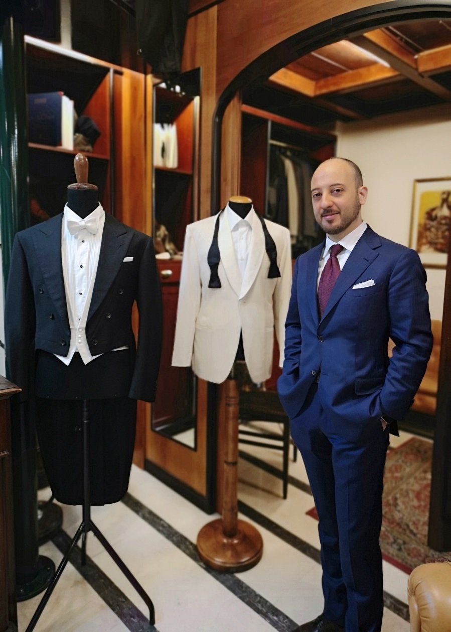 "After school - says Marco Gallo who studied in Rome at the Armando Diaz Institute (graduating as a fashion operator) and later at the European Chamber of Haute Couture - as a boy I would sit next to my father to learn his secrets, and my mother, to test me, would make me write my initials on the shirts. I still remember that when a customer came in I could guess whether he was wearing a suit made by my father or not. In this way I understood, almost for fun, that I could, one day, follow in my father's footsteps". And so it was: strong in the technical preparation learned in the Schools, in the internships with high fashion brands such as Gattinoni, Renato Balestra, but, in particular, from his father's mastery, Marco continues to propose the beauty of artfully made-to-measure, combining tradition with modernity and, even, with technological experimentation.